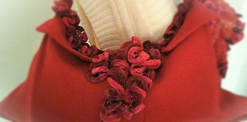 Zu den Handtaschenunikaten fertige ich auch gerne ausgefallene und aufwändige Schals und Stolas an.